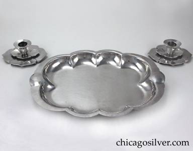 Early Cellini products, especially those done by the Mulholland brothers, were very accomplished and Kalo-like. (Early on the Mulhollands produced a great number of excellent silver objects, but also decided to go downscale, and bought the Aurora Silver Plate Company, which produced interesting but decidedly inferior pieces.) Many of them are decidedly Scandinavian in design.