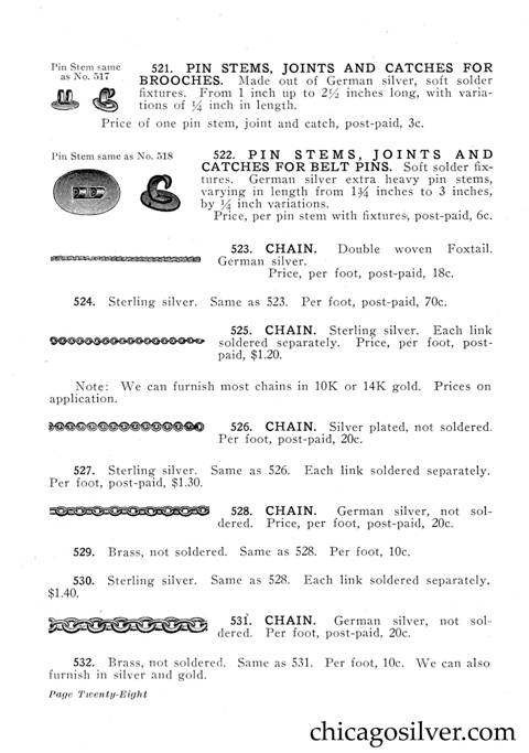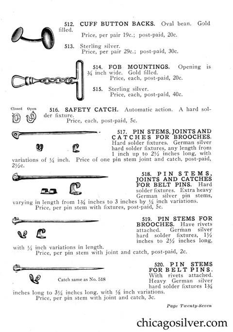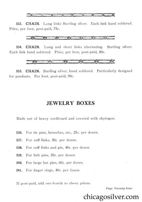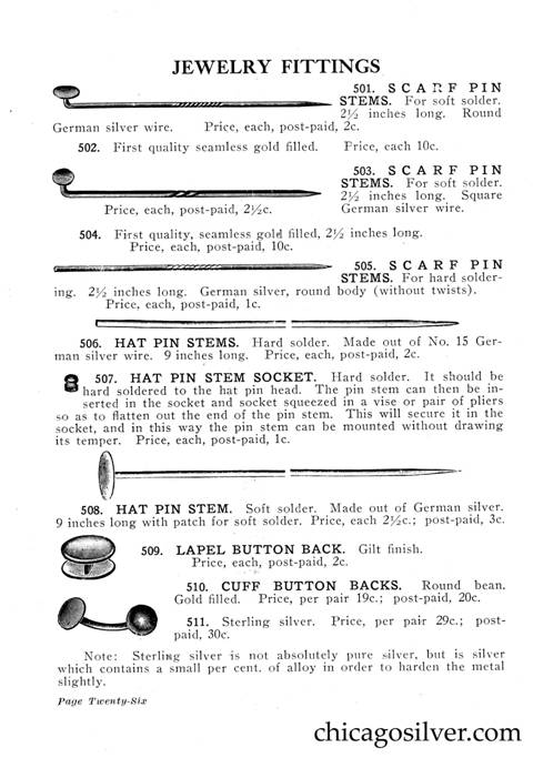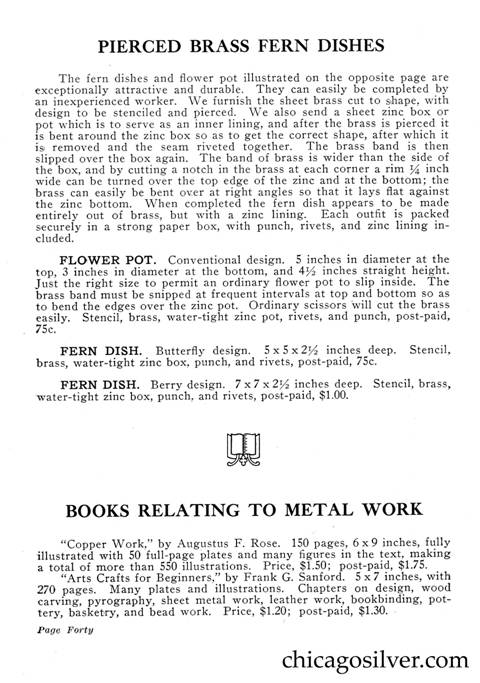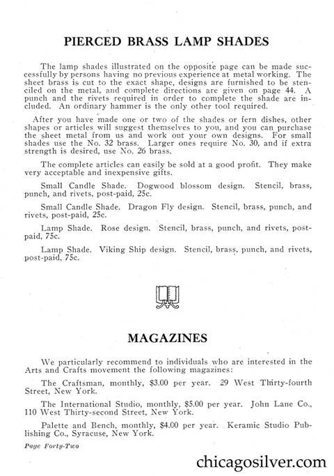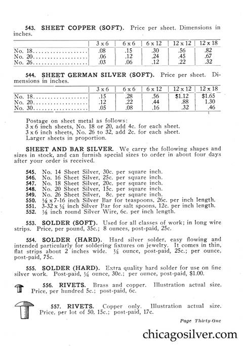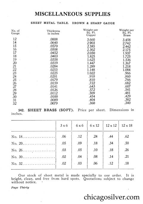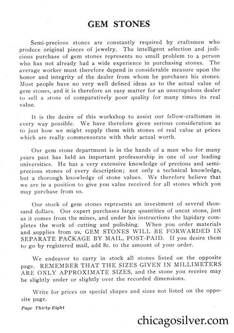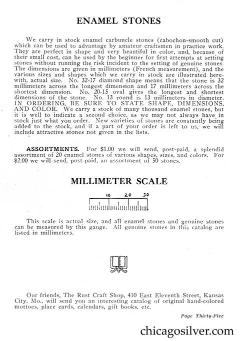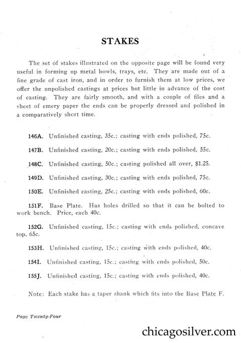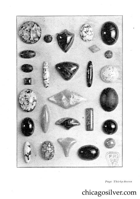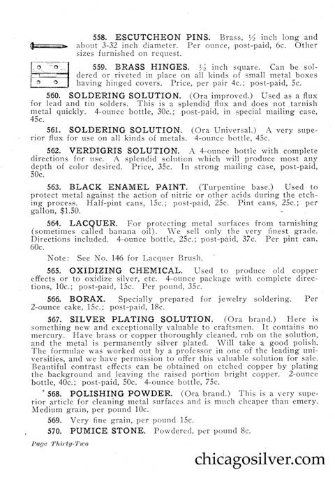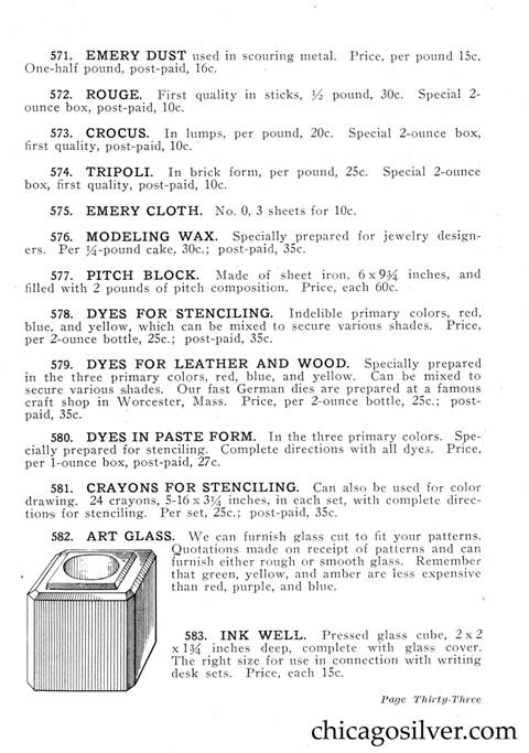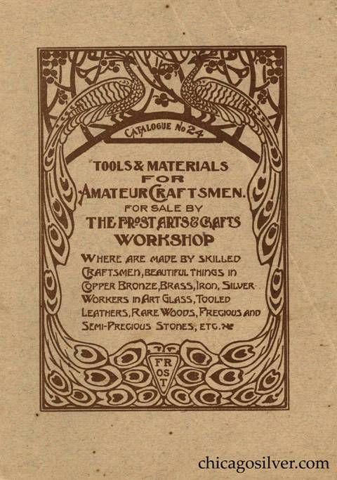 Frost Catalog (Part 2) -- In addition to producing jewelry and holloware, the Frost Workshop also sold tools and supplies. The catalog below contains an extensive selection of tools, as well as gemstones and other materials used by metalworkers, from sheet silver to verdigris to chains to jewelry boxes to goat skins. It also offers a few kits at the back for amateur craftsmen.