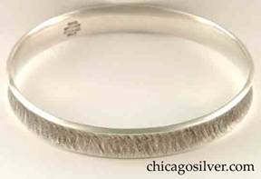 Bracelet, bangle, concave, with very fine chased cross-hatching design on entire surface |