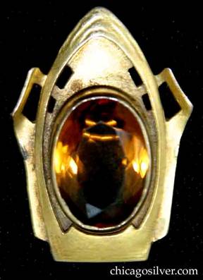 Brooch / pin, gold, with arched multilayered cutouts centering a large bezel-set citrine |