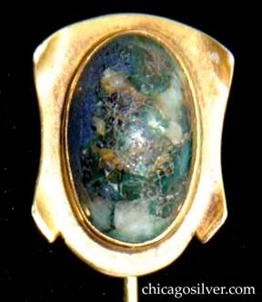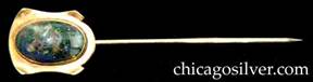 Stickpin, gold, shield-shaped, with bezel-set oval matrix boulder opal. Engraved on back is " I do / 1908" |
