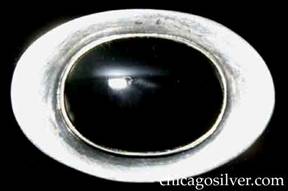 Brooch, oval, with large bezel-set onyx at center |
