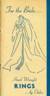 "Wedding and Engagement Rings are created from platinum, solid green or yellow gold, or in the modern combination of platinum and green gold. White gold, which came into being as an imitation of platinum, is not used, principally because it is unsatisfactory as a working medium. Careful hand tooling finishes each piece with a soft lustrous glow…. These bands are handwrought throughout; each tiny flower leaf, motif, or petal is the painstaking work of a Master Craftsman. Sometime jewels are added for brilliance or color to enrich the design…"