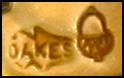 Edward's son Gilbert trained with his father and formed a company with him called "Edward Everett Oakes & Son" that produced lovely hand wrought jewelry. Gilbert's mark is the same OAKES inside an oak leaf followed by a single acorn. Edward's granddaughter, Susan Oakes Peabody continues the family tradition of fine jewelry-making. Her mark is the OAKES inside a leaf followed by two acorns.